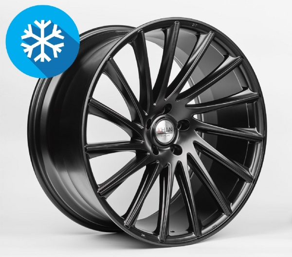 4stk Khan Turbin Mat Black (1050kg) | 5x120 | 10,5x22 ET38 + 9x22 ET32 + 285/35R22 106v - 265/35R22 102v Gripmax piggfrie vinterdekk inkl. TPMS. Tesla Model X vinterhjul.